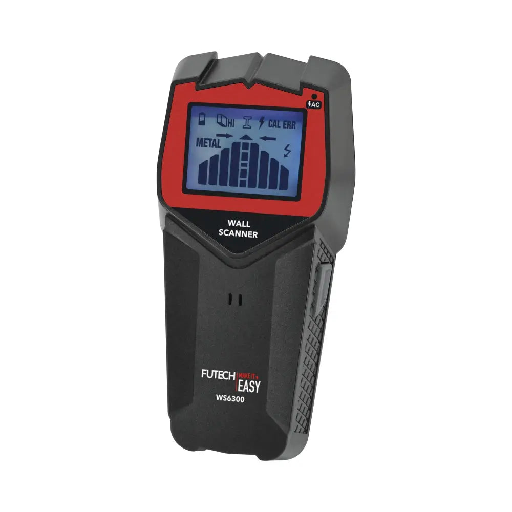 - Hittar träreglar ner till 38 mm och rör, armering och metallreglar ner till 76 mm. Indikerar även strömsatta elledningar 230V ner till 51 mm.