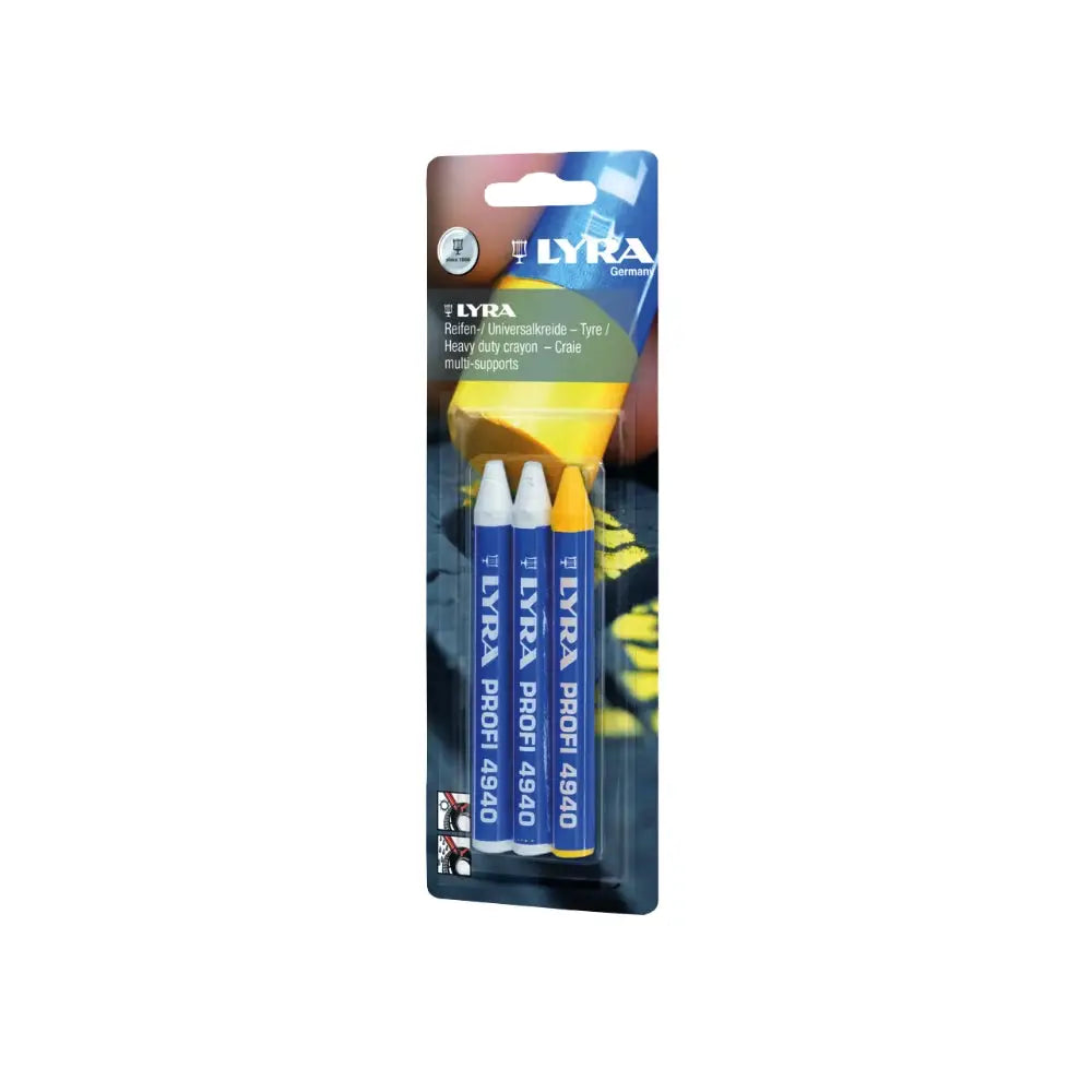 Set med 3st Däck / Heavy Duty Crayon, 2 Vita, 1 Gul, för professionellt bruk.