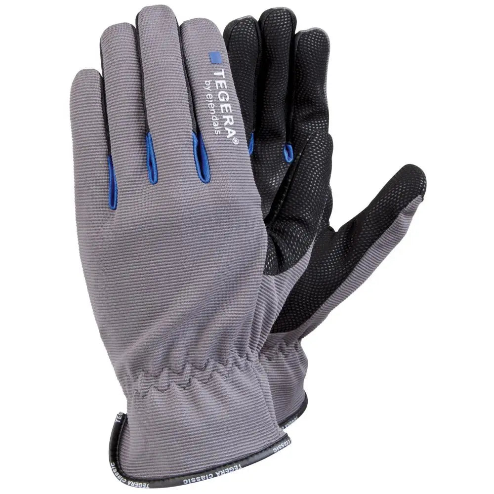 Montagehandske i syntetläder. Mycket bra passform och greppförmåga. Smidig och slitstark. Material: PU/polyester. Hög kvalité. Tegera Classic. Funktioner: Kromfri, resår. Kat. II EN388 1212.