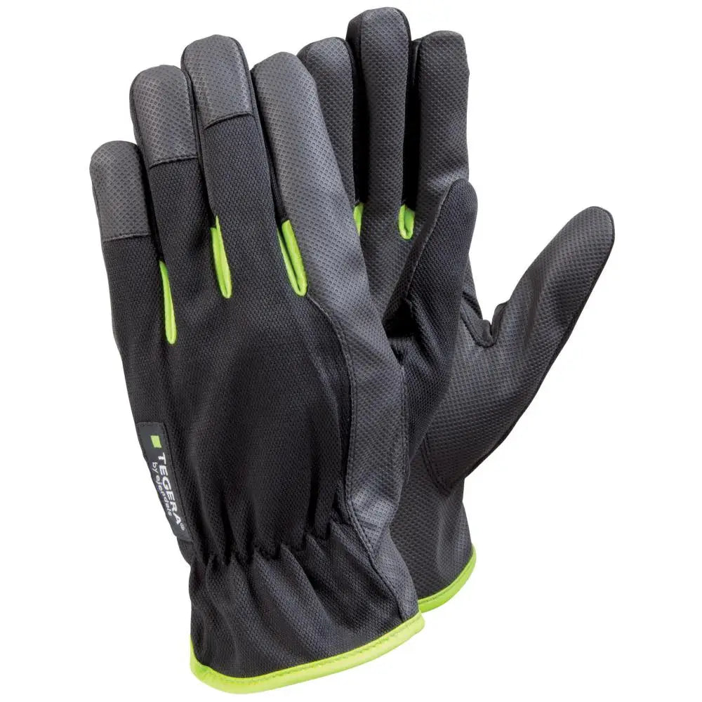Montagehandske i syntetläder. Bra passform, utmärkt greppförmåga. Smidig och slitstark. Material: PU/nylon. Bra kvalité. Tegera Basic. Kat. II EN388 0110.