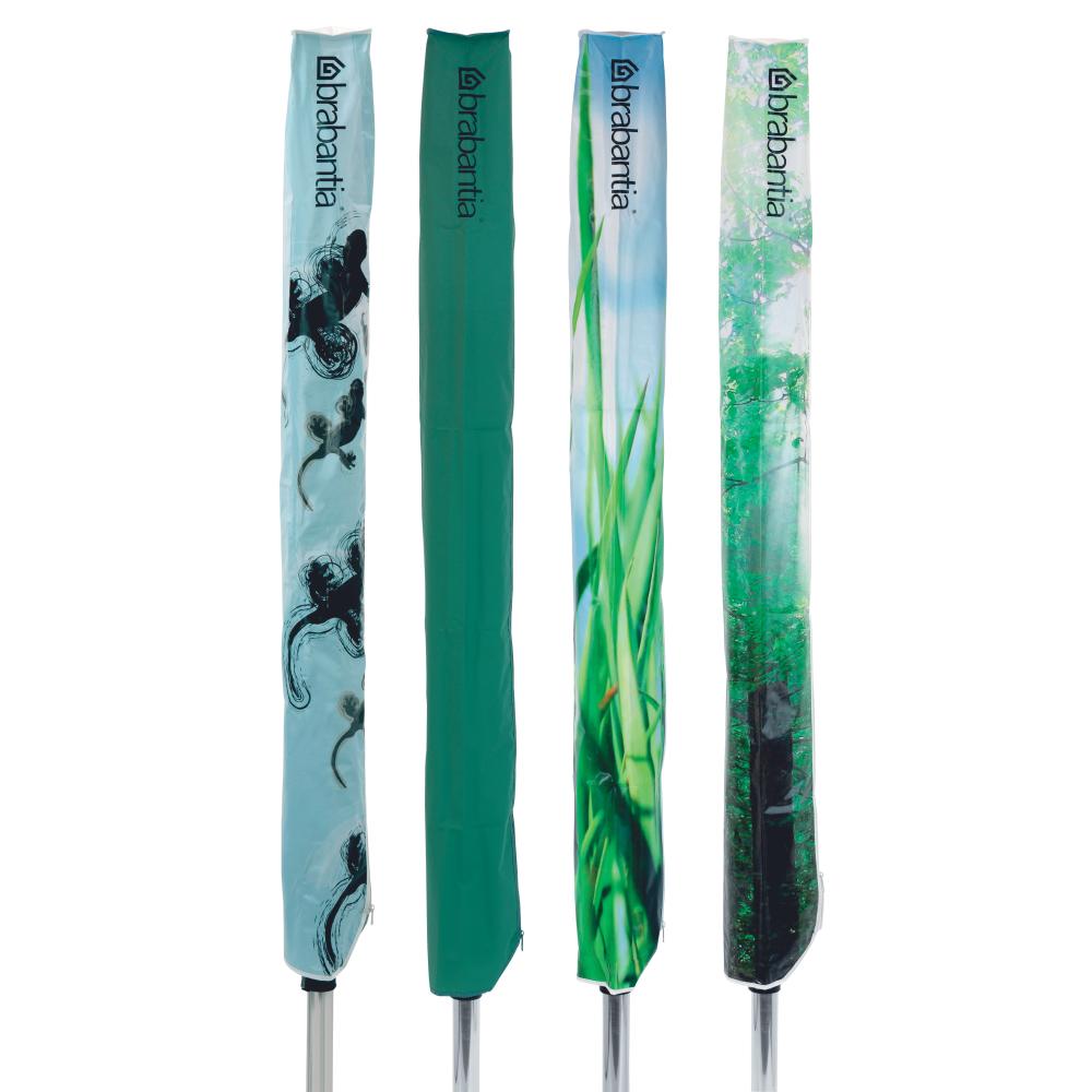 Skyddsöverdrag i mixade färger och mönster (gecko, grönt, gräs och skog) till Brabantia torkvinda Topspinner och Compact. I UV-tåligt slitstarkt polyester. Dragkedja går från toppen ända ned till botten på överdraget.