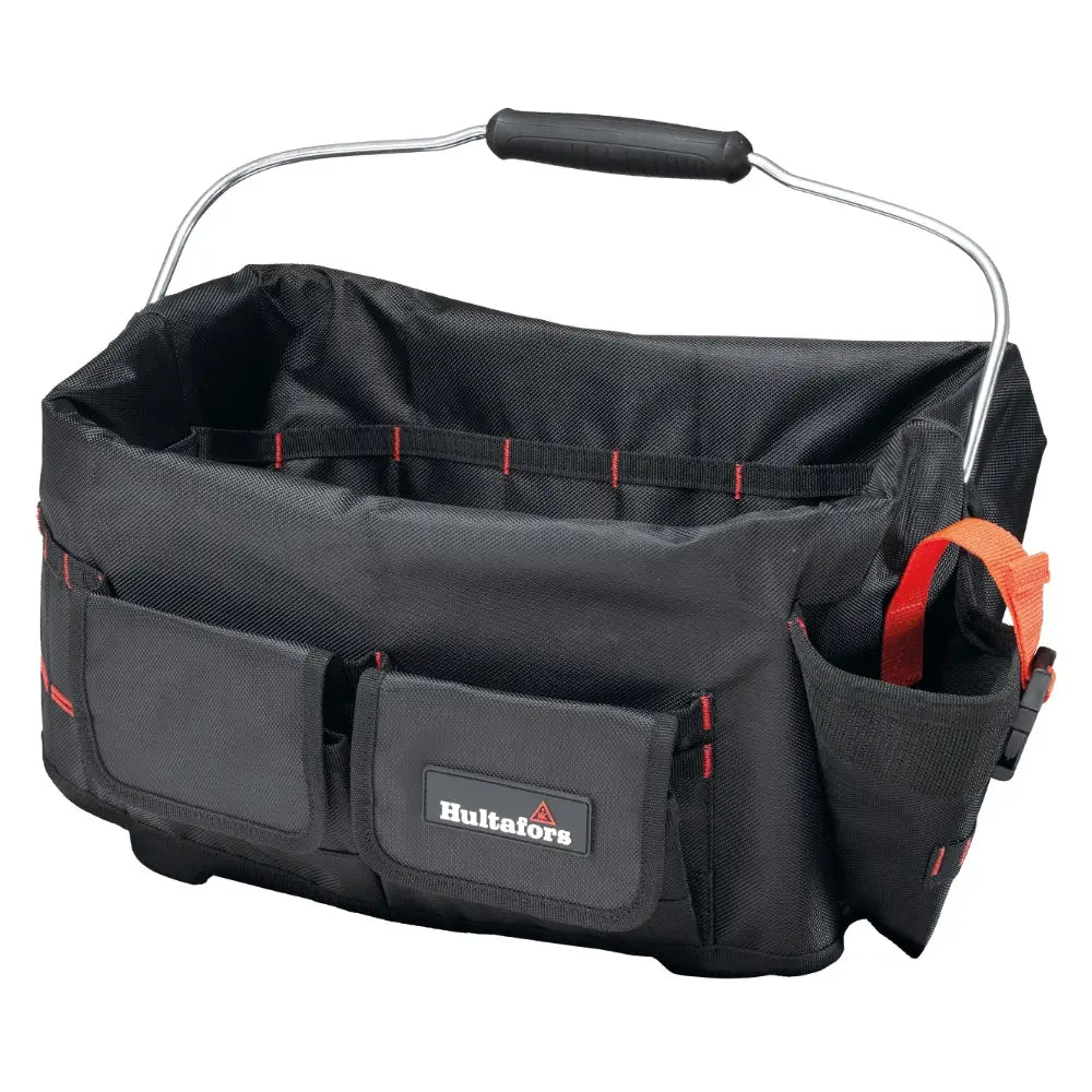 Organisera din verktygshink. Insats i tyg med flera fickor - specifikt utvecklad för att passa Hultafors verktygshink. Insidan har små och medelstora fickor. På utsidan sitter ett hölster för en skruvdragare och större fickor, med och utan lock. Det hjälper dig att organisera dina verktyg längs hinkens sidor, förhindrar att småsaker hamnar längst ner och ger dig en bättre överblick över dina verktyg.