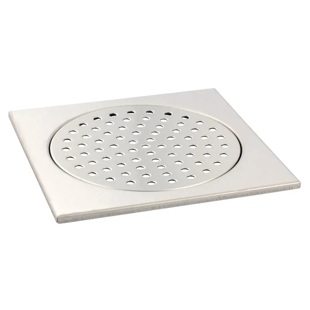 Golvbrunnsil av rostfritt stål typ AISI 430. Storlek 200x200 mm. Tjocklek 1 mm. Ej syrafast.