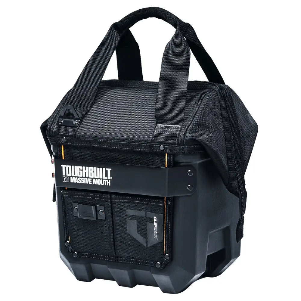 Toughbuilt verktygsväska (Massive Mouth Bag Hard Body Medium) är en dragkedjeförsedd extra robust och kraftig verktygsväska i nylon med hård vattentät botten och förstärkta sidor och hörn i kraftig ABS plast. Hårt lock med XL öppning på hela 40x34 cm för lätt åtkomlighet som står kvar i öppet läge med klicklås.