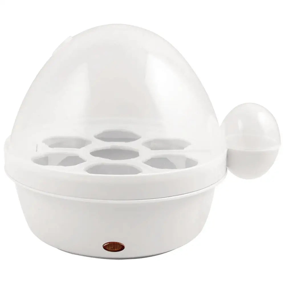Äggkokare i modern design. Med rostfri platta. Ljudsignal som piper när äggen är färdiga. Kan koka upp till 7 ägg samtidigt. Måttkopp med äggpicker medföljer. Kabelvinda i botten. Effekt: 350W. Vikt: 850 g.