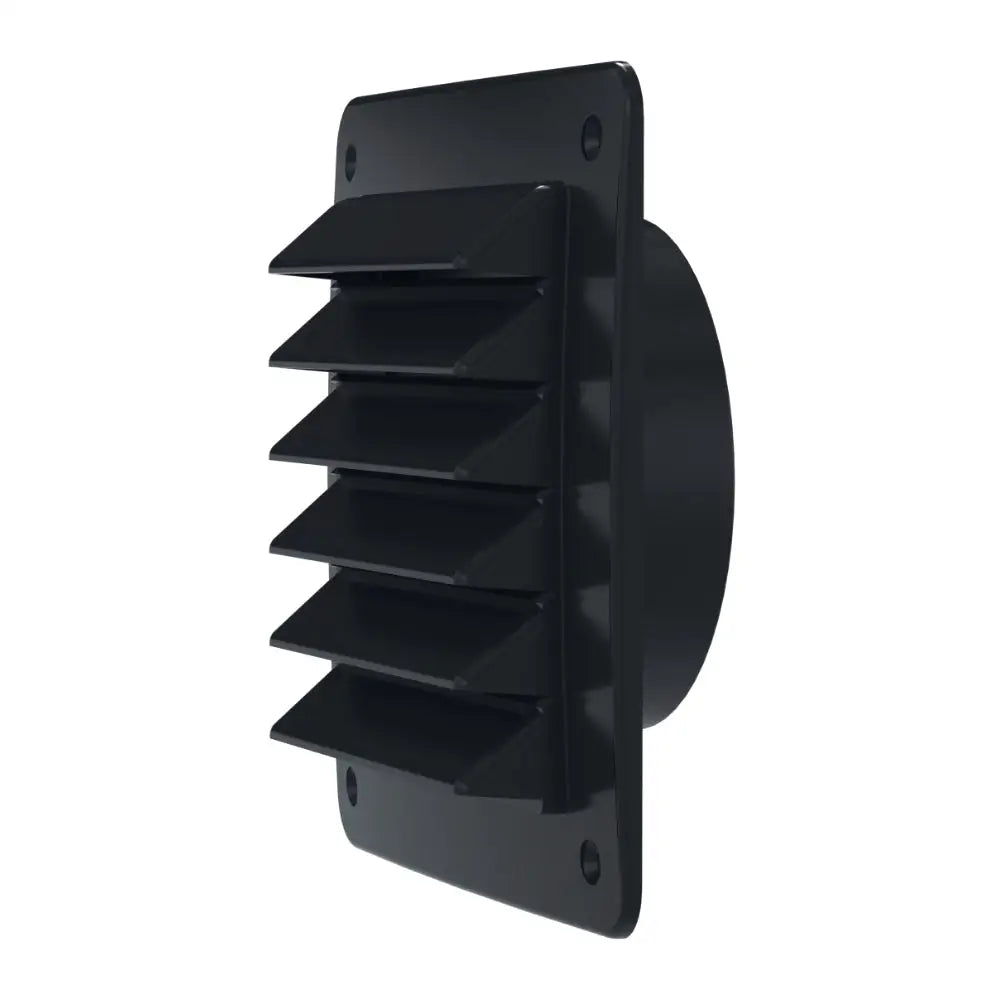 Fyrkantigt ytterväggsgaller med stos. Anpassat för ventiler och avsett att användas på utvändig vägg, försett med dolda skruvhål för skruvmontage.