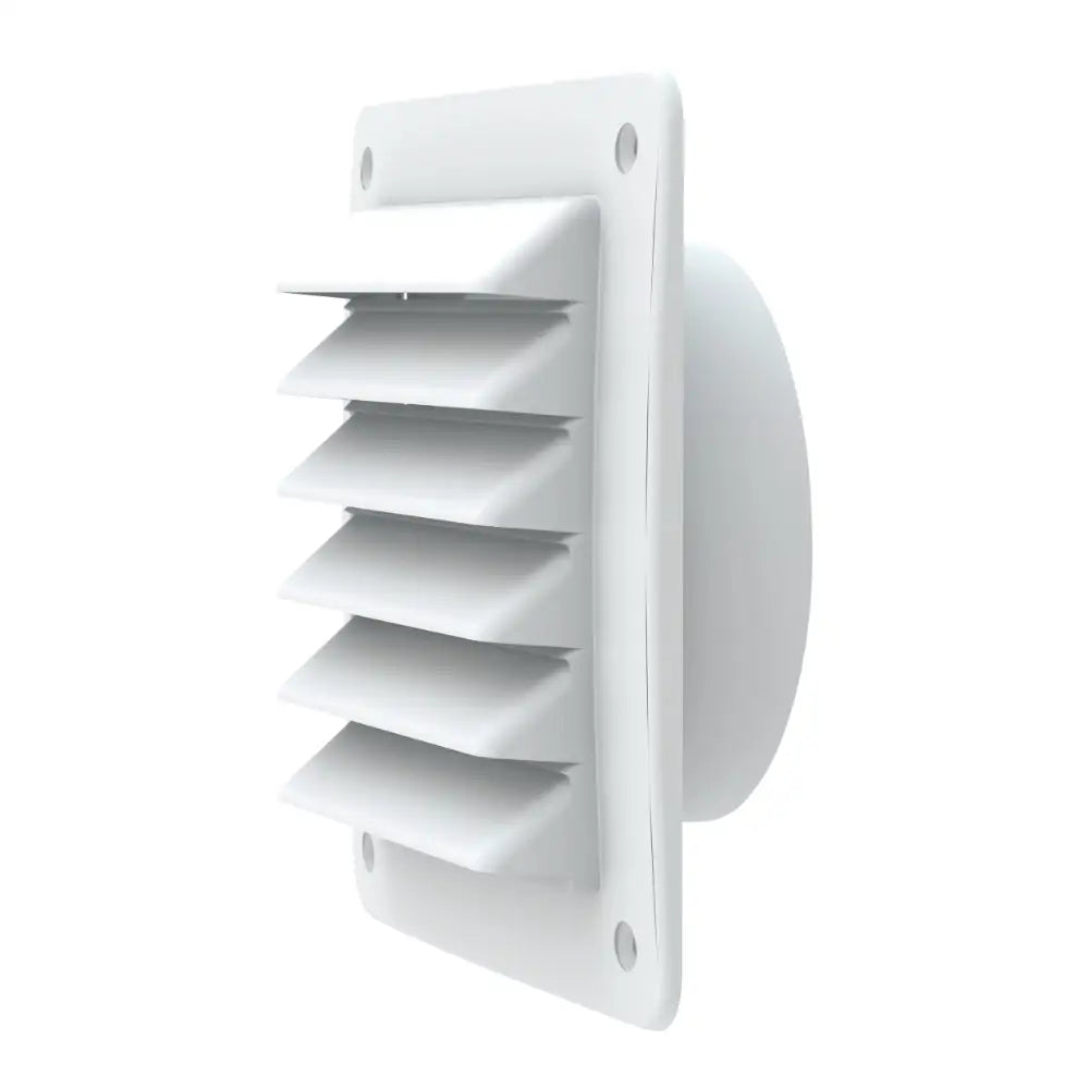 Fyrkantigt ytterväggsgaller med stos. Anpassat för ventiler och avsett att användas på utvändig vägg, försett med dolda skruvhål för skruvmontage.