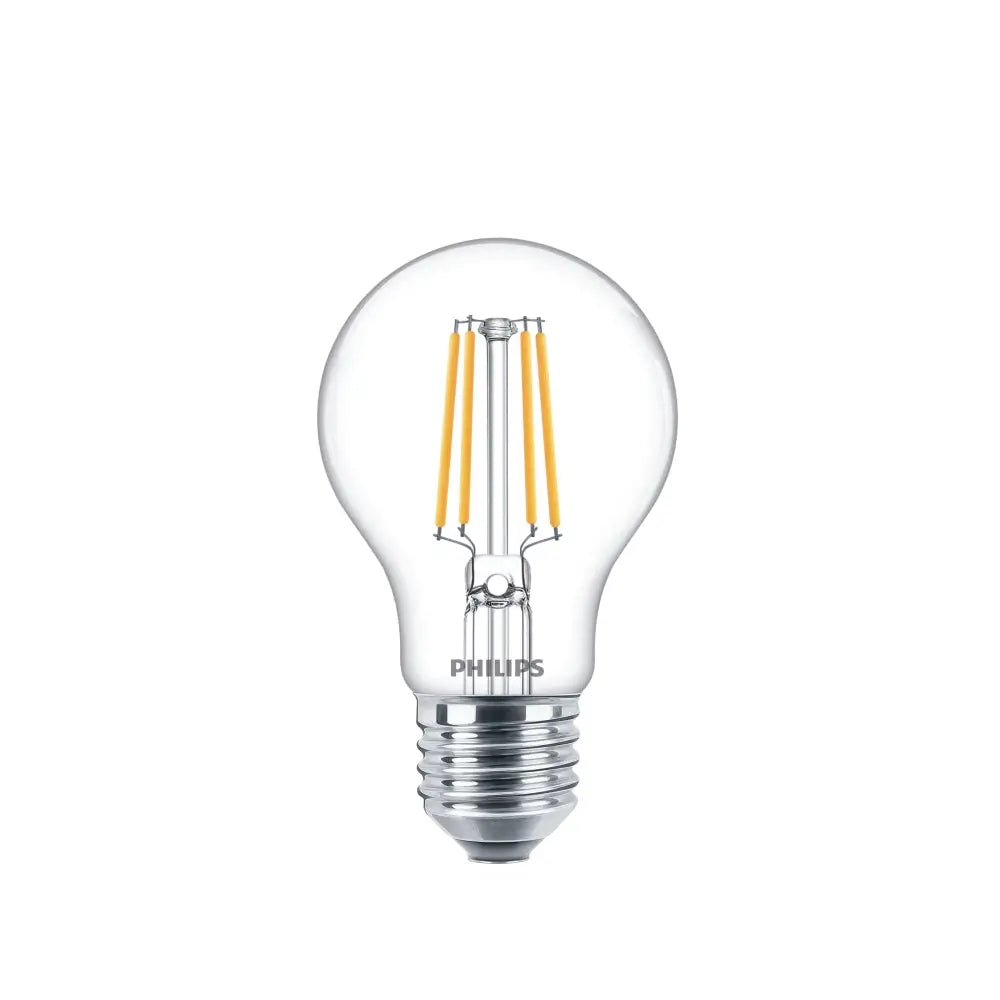 Philips LED-ljuskällor sprider ett vackert, varmvitt ljus, har en ovanligt lång livslängd och är energibesparande. Med sin rena och eleganta design är den här ljuskällan det perfekta alternativet när du vill byta ut dina klara standardljuskällor. LED-lampa i klassiskt glas. Snygg och stämningsfull lampa, samma höga prestanda som alltid. Liknar standardglödlampor i storlek och form. Perfekt för allmän rumsbelysning. Utformad för att vara behaglig för ögonen.