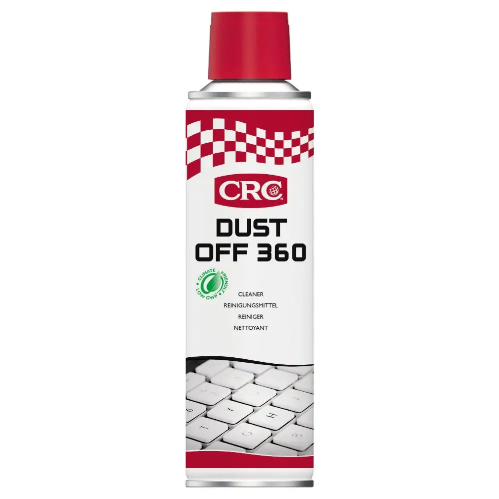 CRC Dust Off 360 (HFO*-1234ze) är en kondenserad, ej antändlig gasblandning under högt tryck, som lämnar spraymunstycket som en kraftfull stråle av torr inert gas som avlägsnar damm och rengör. Strålen blåser bort ludd, oxidpartiklar och damm på några sekunder. Det är den mest effektiva produkten för rengöring av elektronik och datorer och den bidrar till minskad risk för fel, driftstopp och skador.