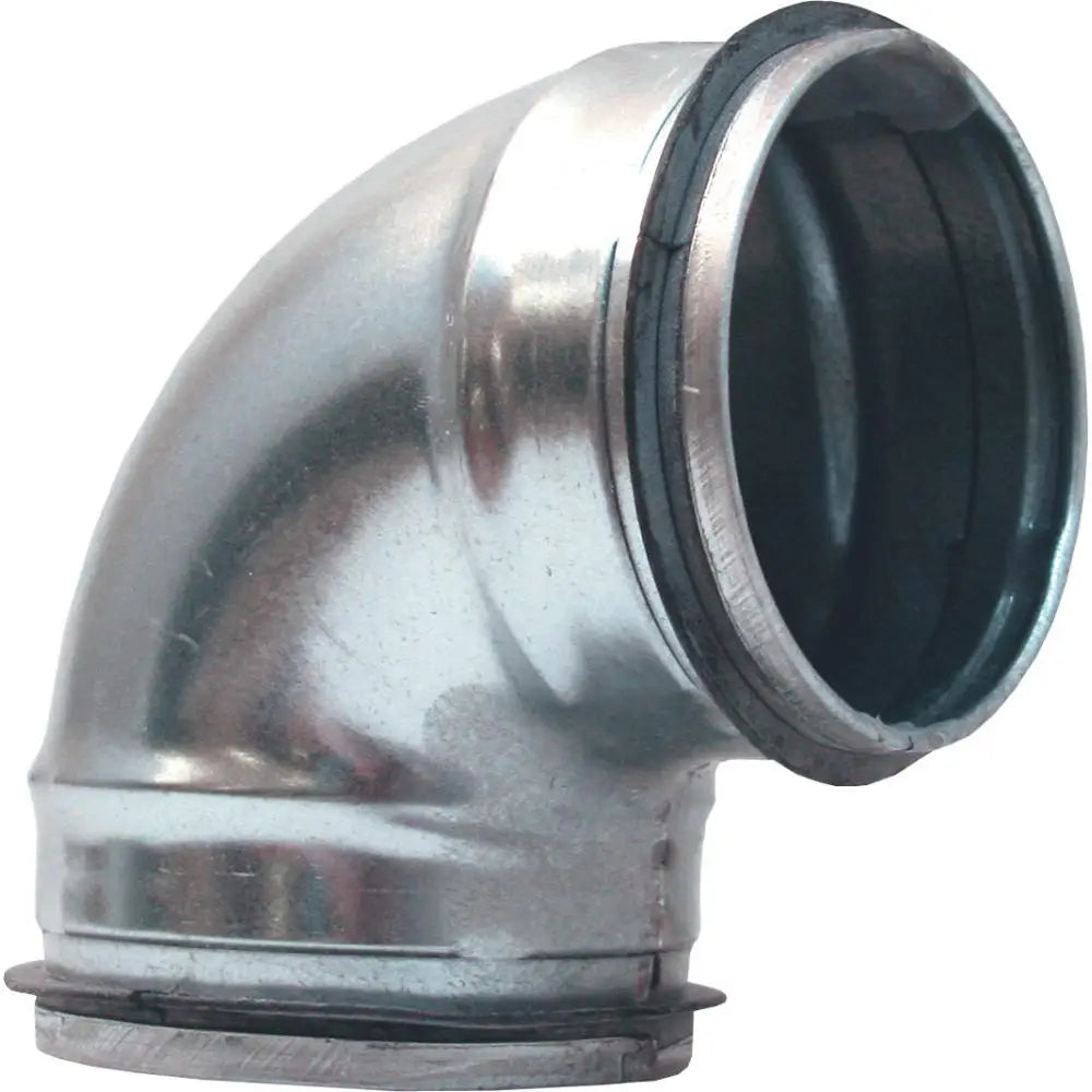 Rörböj kort, extra kort bygglängd. Kanalsystem för cirkulär kanaldragning. Tillverkat av galvaniserad stålplåt.
