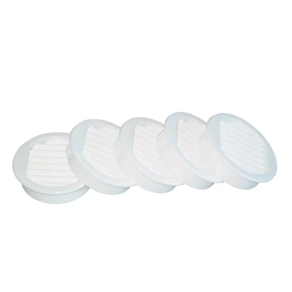 Vit plast. Har en ram på baksidan försedd med fästrillor för enkel montering. Påsförpackade.