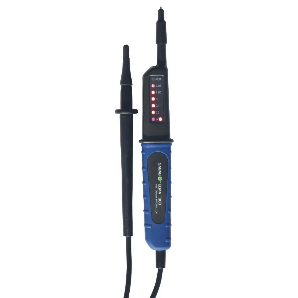 En smidig 2-polig säkerhetsspänningsprovare med smarta designfunktioner. Instrumentet har en klar LED-indikation på relevanta spänningar och automatisk polaritetsvisning. Testprobarna har både 2 och 4mm diameter testspetsar, vilket säkerställer god kontakt i alla typer av uttag. Sagab by Elma 900 uppfyller IEC 61010-1 KAT III 400V och KAT II 400V.