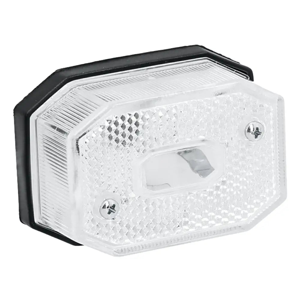 Positionsljus vit med reflex inklusive plastfäste. 12V. Glödlampor ingår ej. Måttangivelser gäller endast lampans storlek och inkluderar inte måtten för fästet.