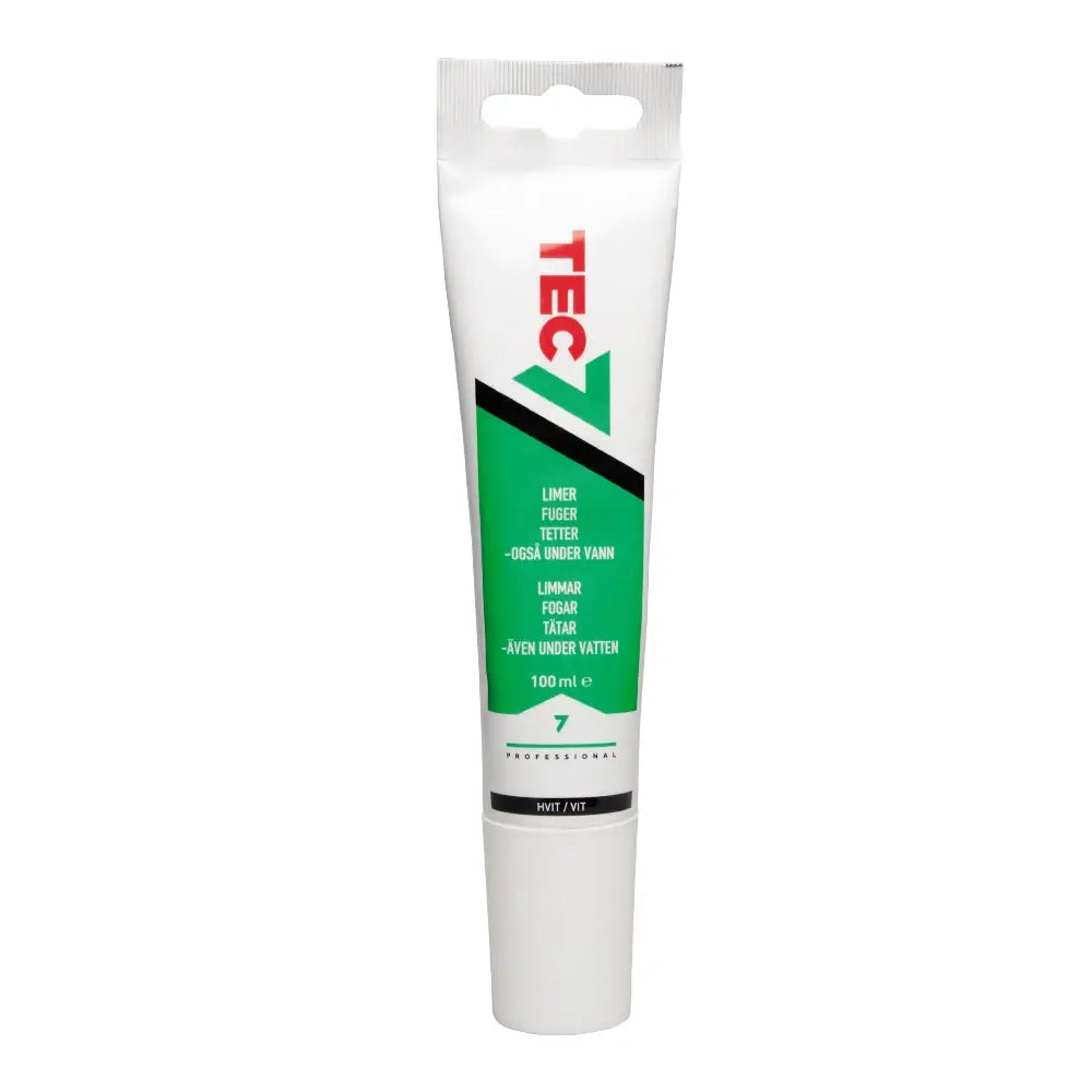 Miljöanpassade MS-polymerlim, fog-och tätningsmassa. Tec7 är ett monteringslim, trälim, polyuretanmassa, silikon, sanitet-fogmassa, akryl, butyltätning, nåtmassa och fönsterkitt! Fäster på våta ytor. Härdar snabbt, krymper inte, rinner inte och förblir flexibelt. Limmar starkt: 27 kg/cm² - primer behövs inte.