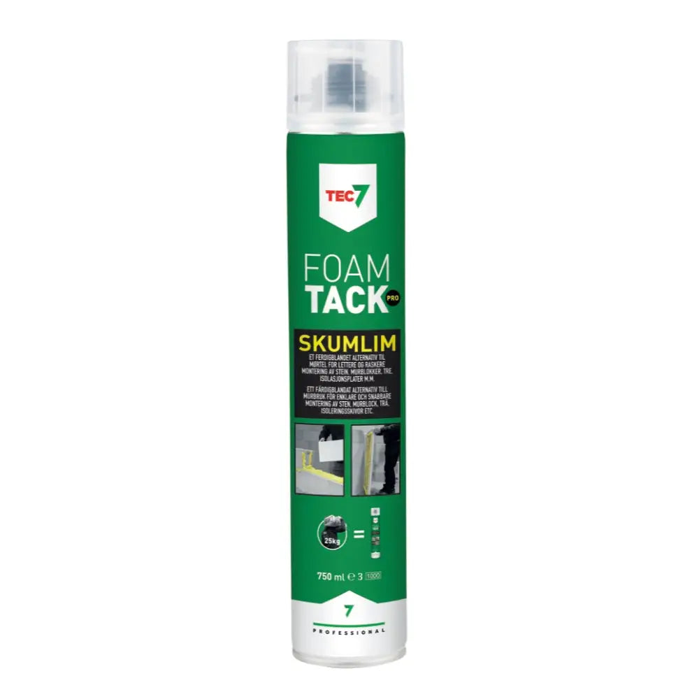 Polyuretanlim för snabb och effektiv limning av murblock och gips-, polystyren och panelskivor, kan även användas på byggmaterial som tegelsten, natursten, trälister etc. En burk FOAMTACK förenklar monteringsarbetet då den ersätter upp till 25 kg torrbetong. Den är ett självklart förstahandsval när arbetstid, härdningstid, hållbarhet och isoleringsförmåga är viktiga faktorer. Extremt låg efterexpansion ger en exakt fyllning av hålrum runt elrör och anslutningsdosor, samt även dörrar och fönster, medan frånvaro av tryck säkerställer att dörrar och fönsterramar inte skadas under härdning. Den har hög motståndskraft mot kemikalier, vatten och röta samt är temperaturbeständig från -65 °C till +130 °C (kortvarig). Hög isoleringsförmåga bryter både köldbryggor och ljud (upp till 60 dB).
