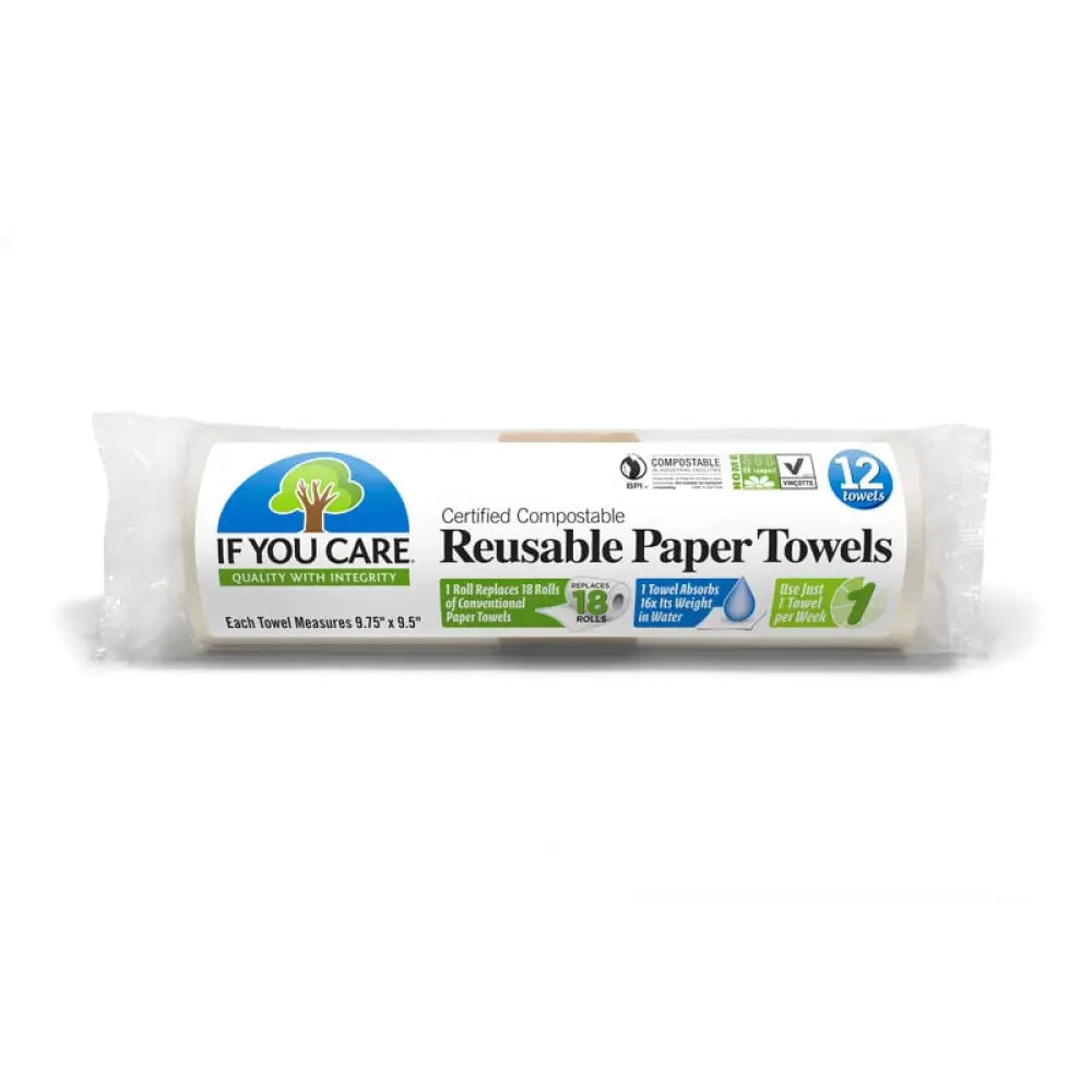 If You Care Återanvändbart Hushållspapper är ett slitstarkt och komposterbart alternativ till traditionellt hushållspapper. Ett enda paket ersätter upp till 18 rullar hushållspapper, vilket minskar avfall och sparar på naturresurser. Tillverkat av en blandning av cellulosa, icke-GMO-oblekt bomull och mirabilit, är detta papper extremt absorberande och hållbart.