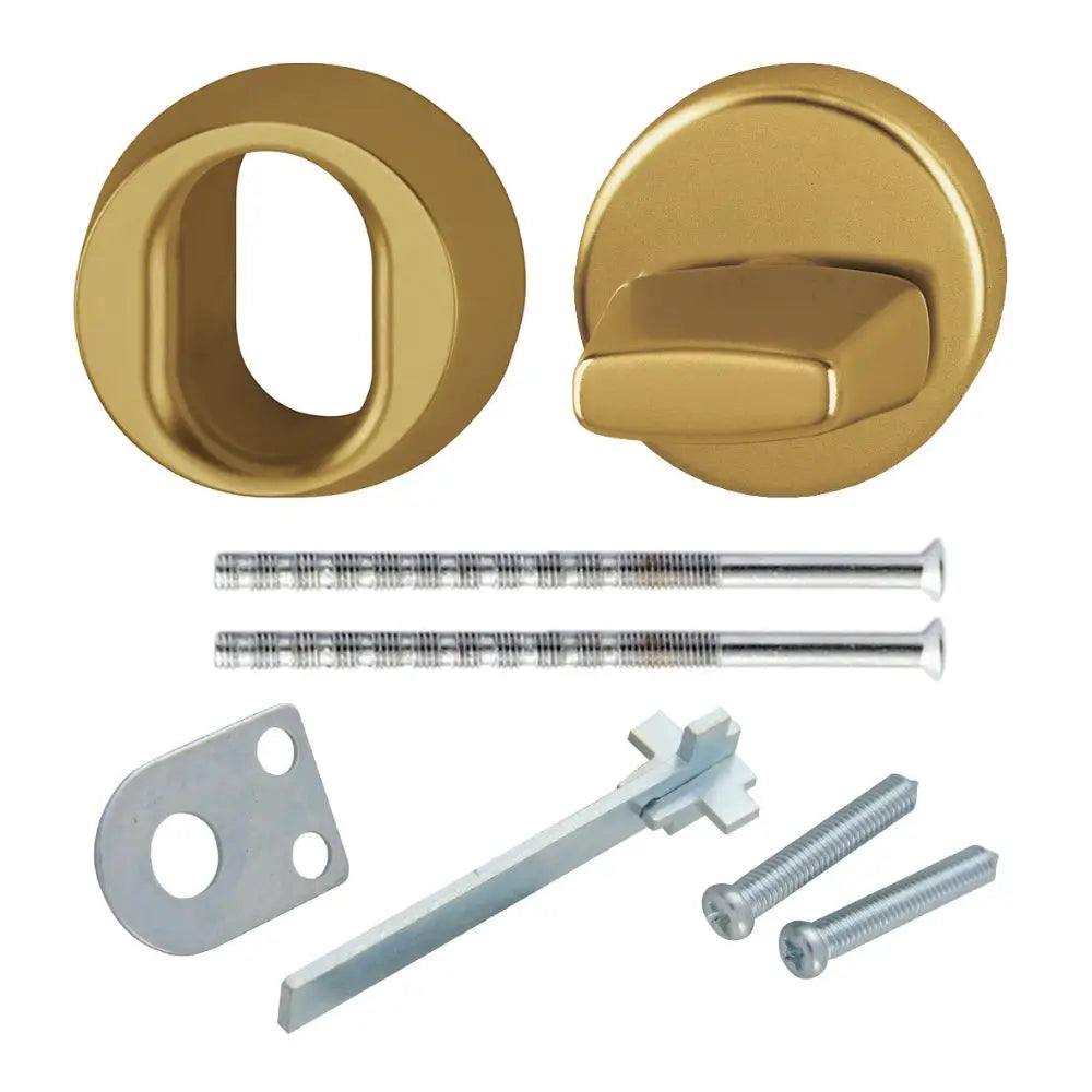 Behörssats i aluminium till oval cylinder. Innehåller: cylinderring multi, vred, vredmedbringare och skruv till oval cylinder.
