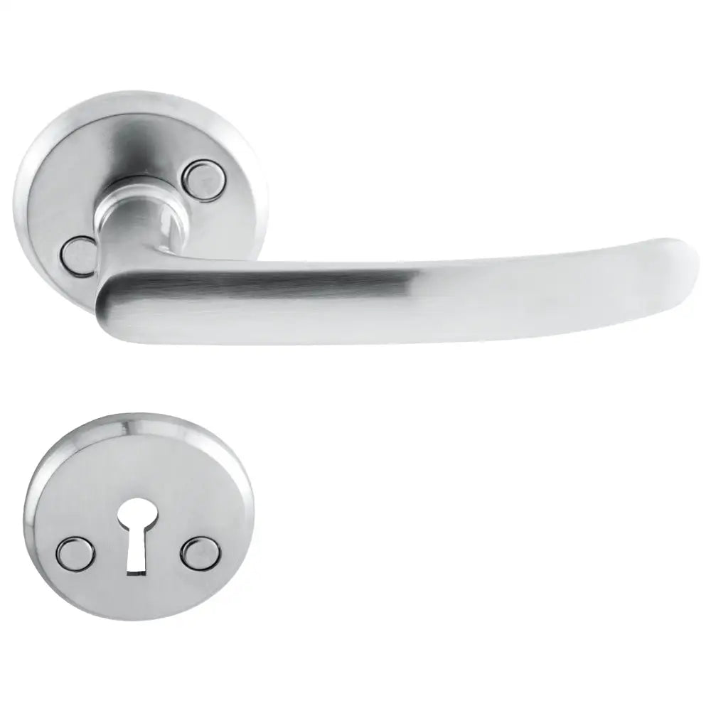 Dörrtrycke utan returfjäder avsett för lättare innerdörrar med 35-45 mm dörrtjocklek. Rosett Ø 52 mm. Förpackningen innehåller handtag, nyckelskyltar, fyrkantpinne och genomgående skruv som kapas till rätt längd. Handtagen fixeras med medföljande insexskruv för bästa stabilitet.