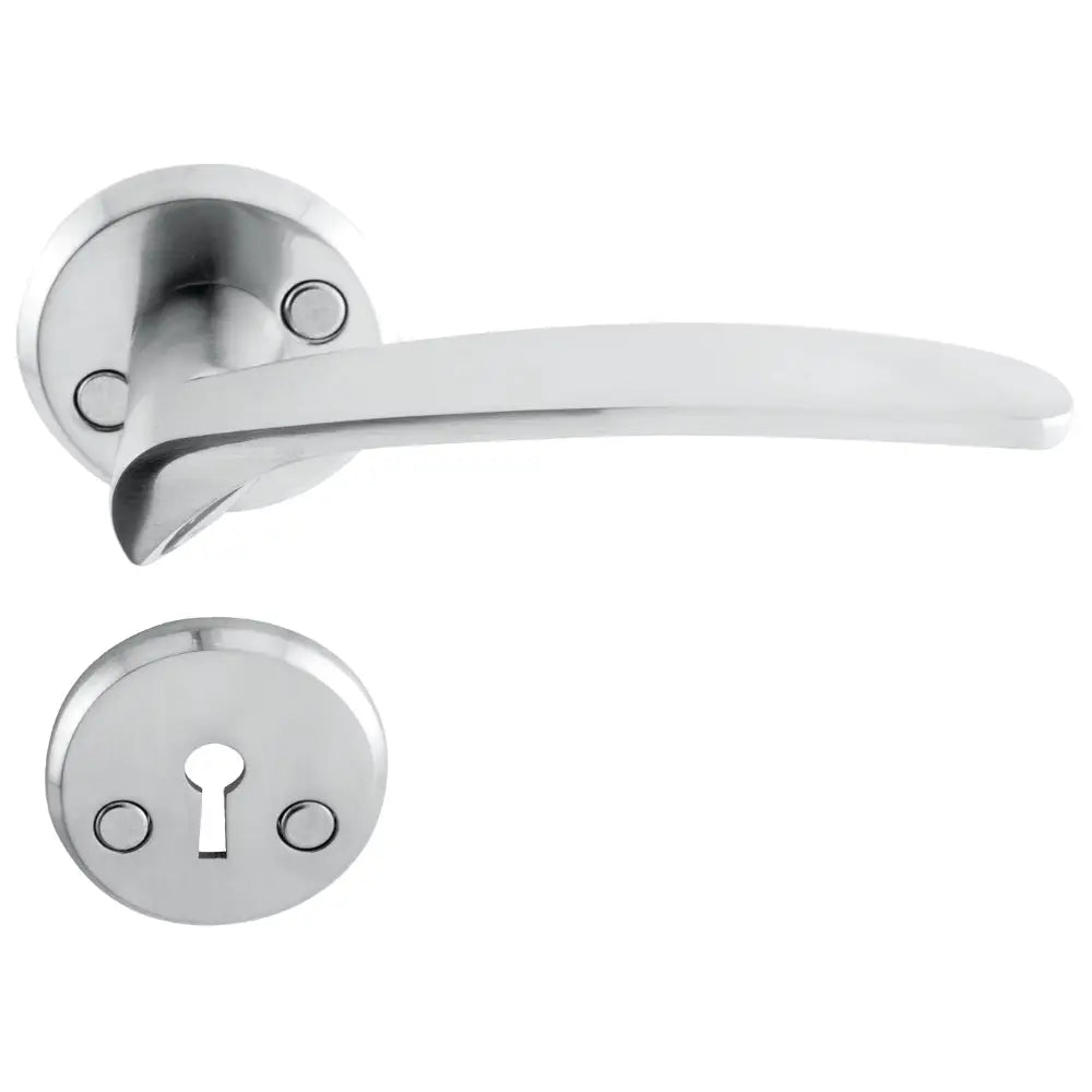 Dörrtrycke utan returfjäder avsett för lättare innerdörrar med 35-45 mm dörrtjocklek. Rosett Ø 52 mm. Förpackningen innehåller handtag, nyckelskyltar, fyrkantpinne och genomgående skruv som kapas till rätt längd. Handtagen fixeras med medföljande insexskruv för bästa stabilitet.