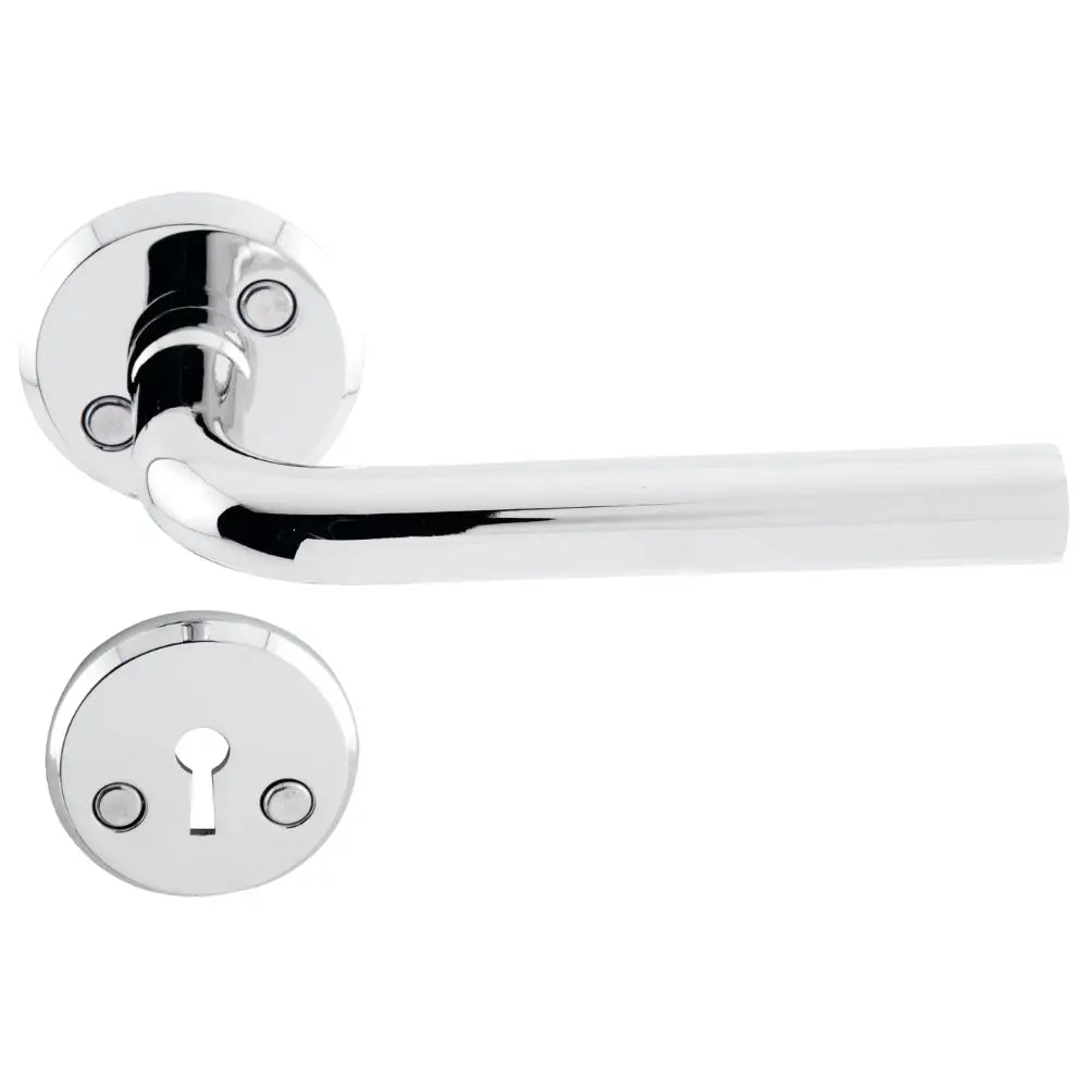 Dörrtrycke utan returfjäder avsett för lättare innerdörrar med 35-45 mm dörrtjocklek. Rosett Ø 52 mm. Förpackningen innehåller handtag, nyckelskyltar, fyrkantpinne och genomgående skruv som kapas till rätt längd. Handtagen fixeras med medföljande insexskruv för bästa stabilitet.
