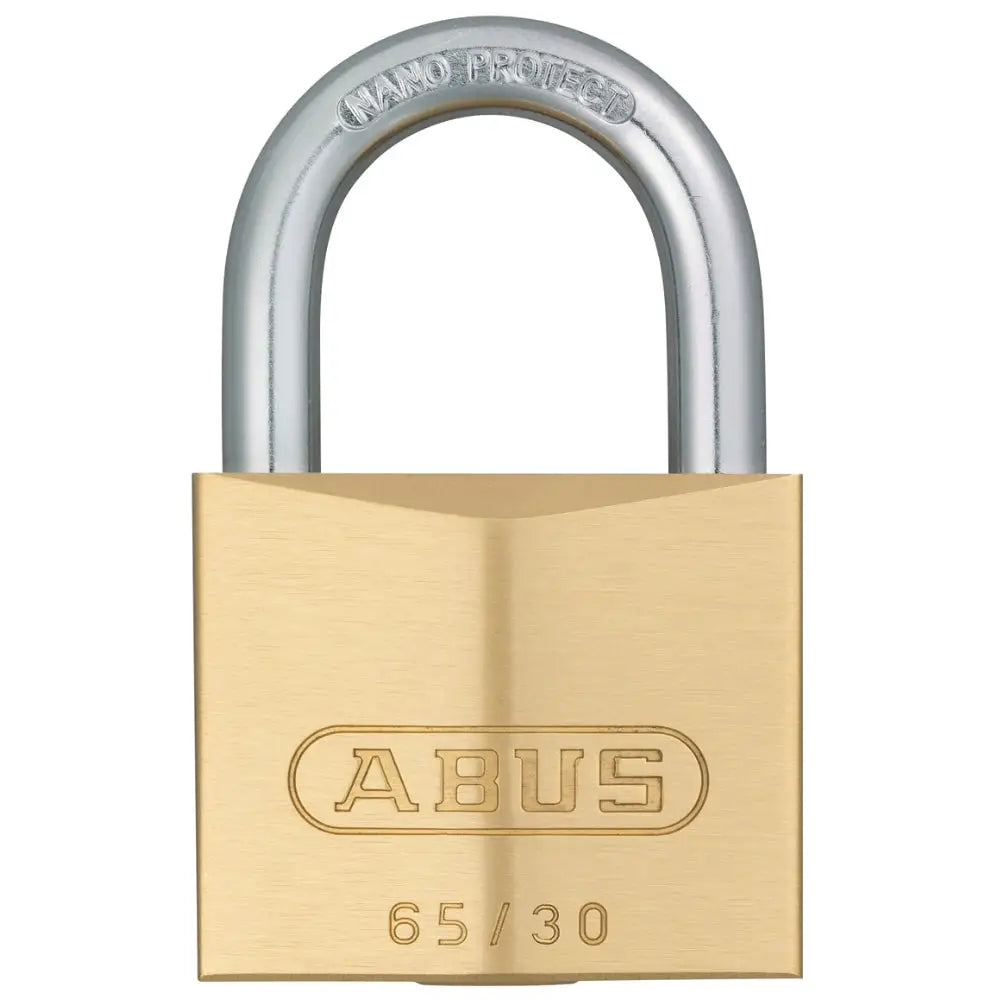 Mässinglås 65 har ett låshus i massiv mässing och bygel av härdat stål med Nano Protect-beläggning för korrosionsskydd. Hänglåsets inre delar är av rostfritt material. Finns i lika låsning (LL).