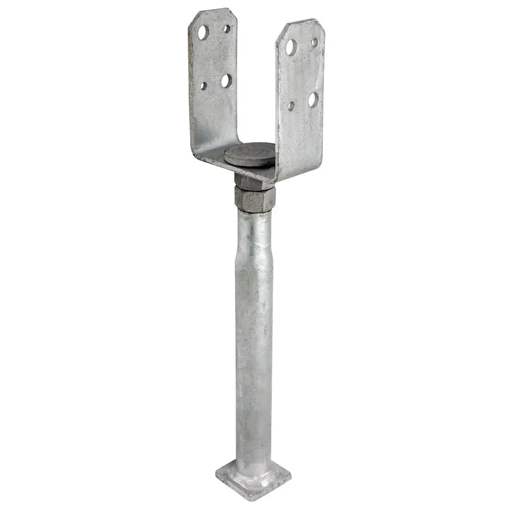 Stolphållare PSUA med justerbar höjd används för ingjutning i betong vid infästning av stolpar, till exempelvis staket, pergola och carport. För icke bärande konstruktioner. För fastsättning används ankarspik 4,0 eller ankarskruv 4,8. Till bulthålen används M8, M10 bultar