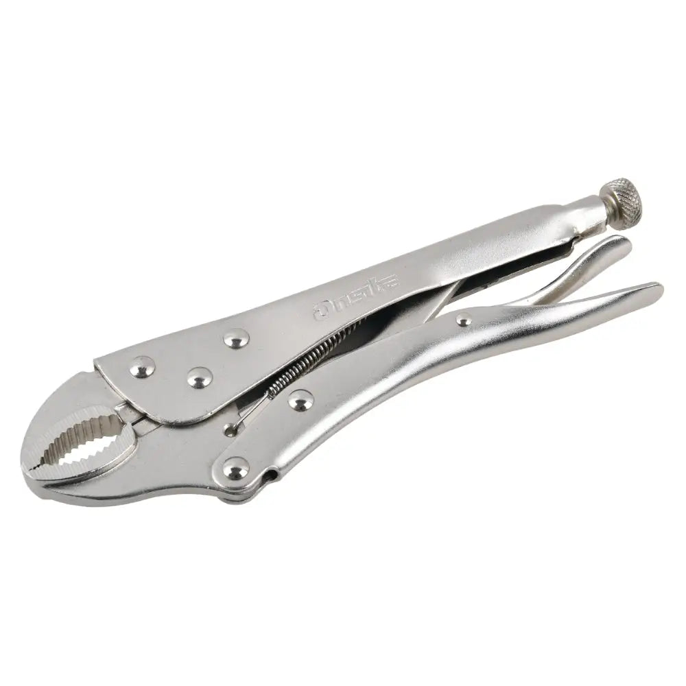 Av stål, helförnicklad, halvrunda backar, låsning med reglerbart tryck.