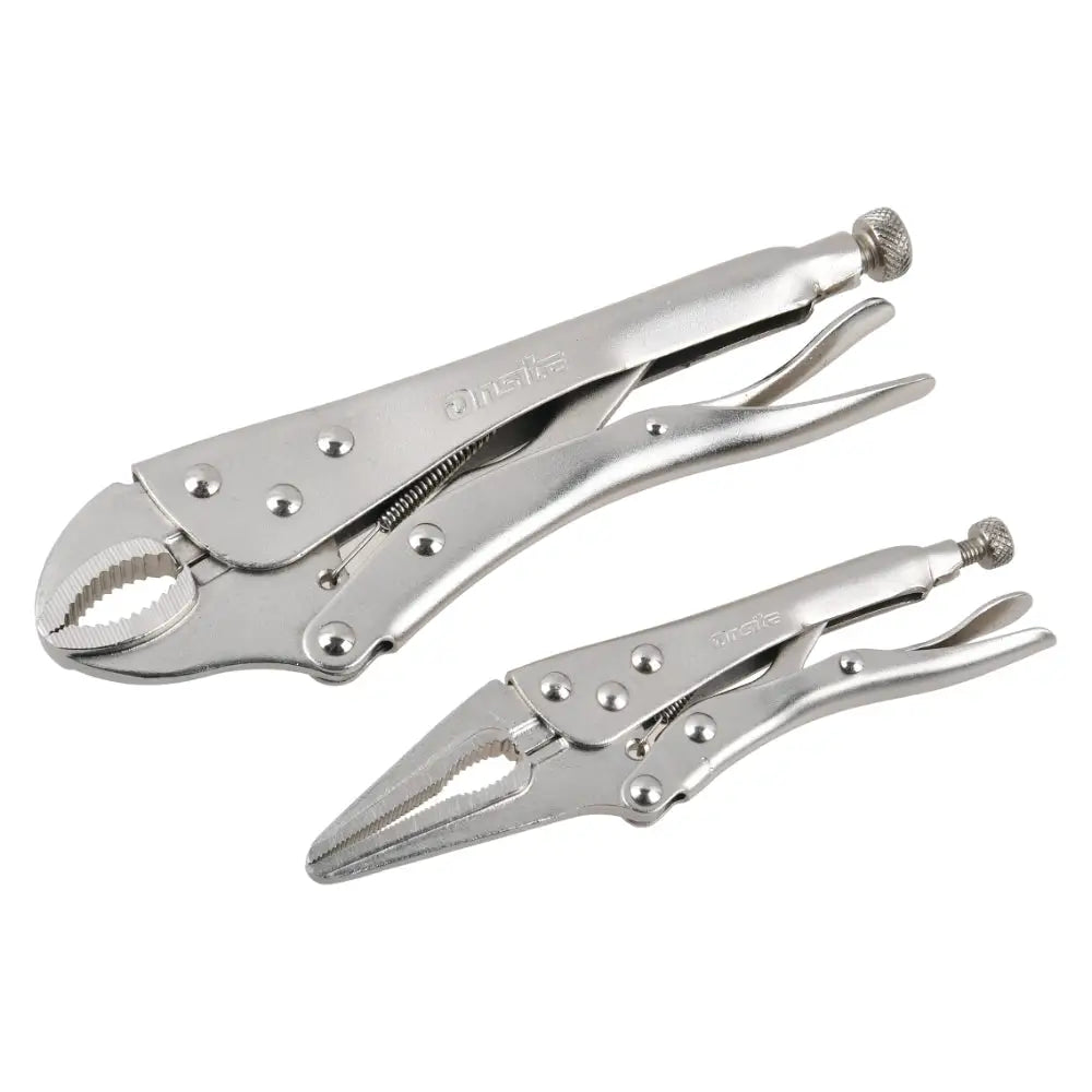 2 svetstänger av stål, helförnicklade, låsning med reglerbart tryck.