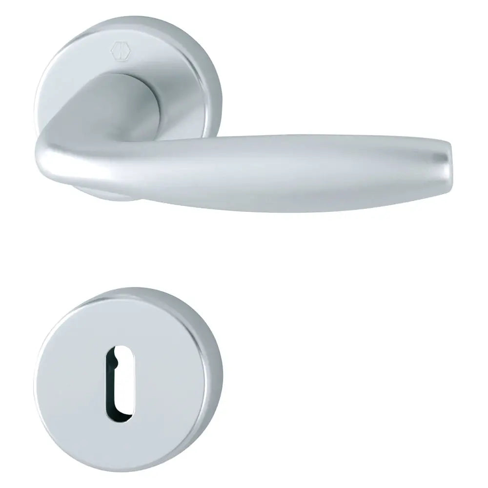 Dörrhandtag innerdörr med HOPPE Kvick-i-Sprint fastsättning. Komplett set med handtag, rosett och nyckelskylt för dörrtjocklek 37-42 mm. Med den unika Kvick-i-Sprint fastsättningen blir montaget stabilare och behöver inte heller återskruvas efter montage. 10 års funktionsgaranti. Styck-förpackad.