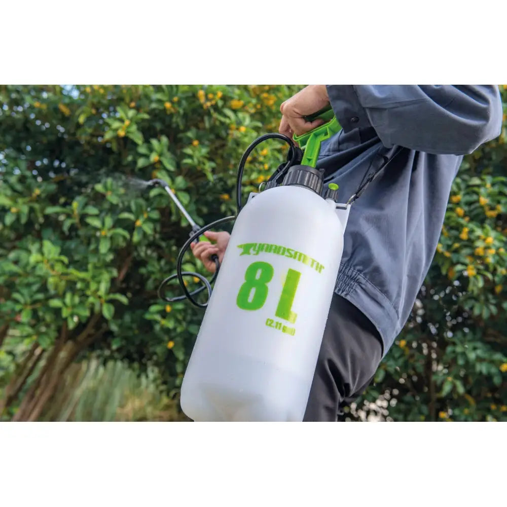 Tryckspruta Yardsmith är en praktisk och mångsidig enhet med en kapacitet på 5 eller 8 liter, perfekt för skadedjursbekämpning, ogräsbekämpning, bevattning och hushållsrengöring. Den är utrustad med en säkerhetsventil för att förhindra övertryck och har en rostfri spraystång för lång hållbarhet. Handtaget är tillverkat i plast och inkluderar en låsfunktion på avtryckaren, vilket gör att du slipper hålla ner den hela tiden.