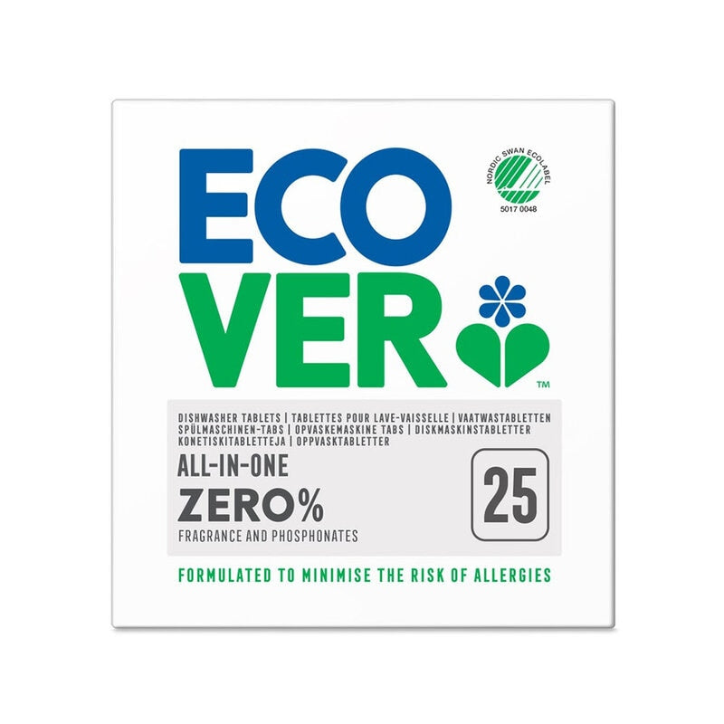 Ecover Zero Maskindiskmedel är parfymfria diskmaskinstabletter, särskilt utvecklade för allergiker och känsliga personer. Med en biologiskt nedbrytbar och växtbaserad formula rengör de effektivt utan starka kemikalier eller tillsatta doftämnen. Tabletterna är Allergy UK-godkända, Svanen-certifierade och ett miljövänligt val för ren disk och en hållbar livsstil.