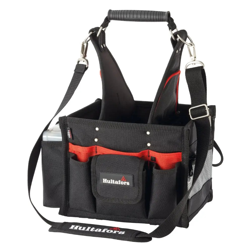 Omväxlande rött och svart tyg gör det lättare att skilja olika verktyg och fickor åt. Mittsektionerna är fastnitade i väskan för extra styvhet och hållbarhet.