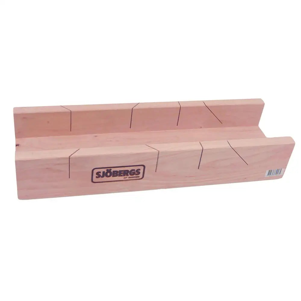 Tillverkad av lövträ. Med stödkant och 45° snedställt spår. Med 45° och 90° vinklar. Invändig bredd 100 mm. Invändig höjd 50 mm. Längd 450 mm.