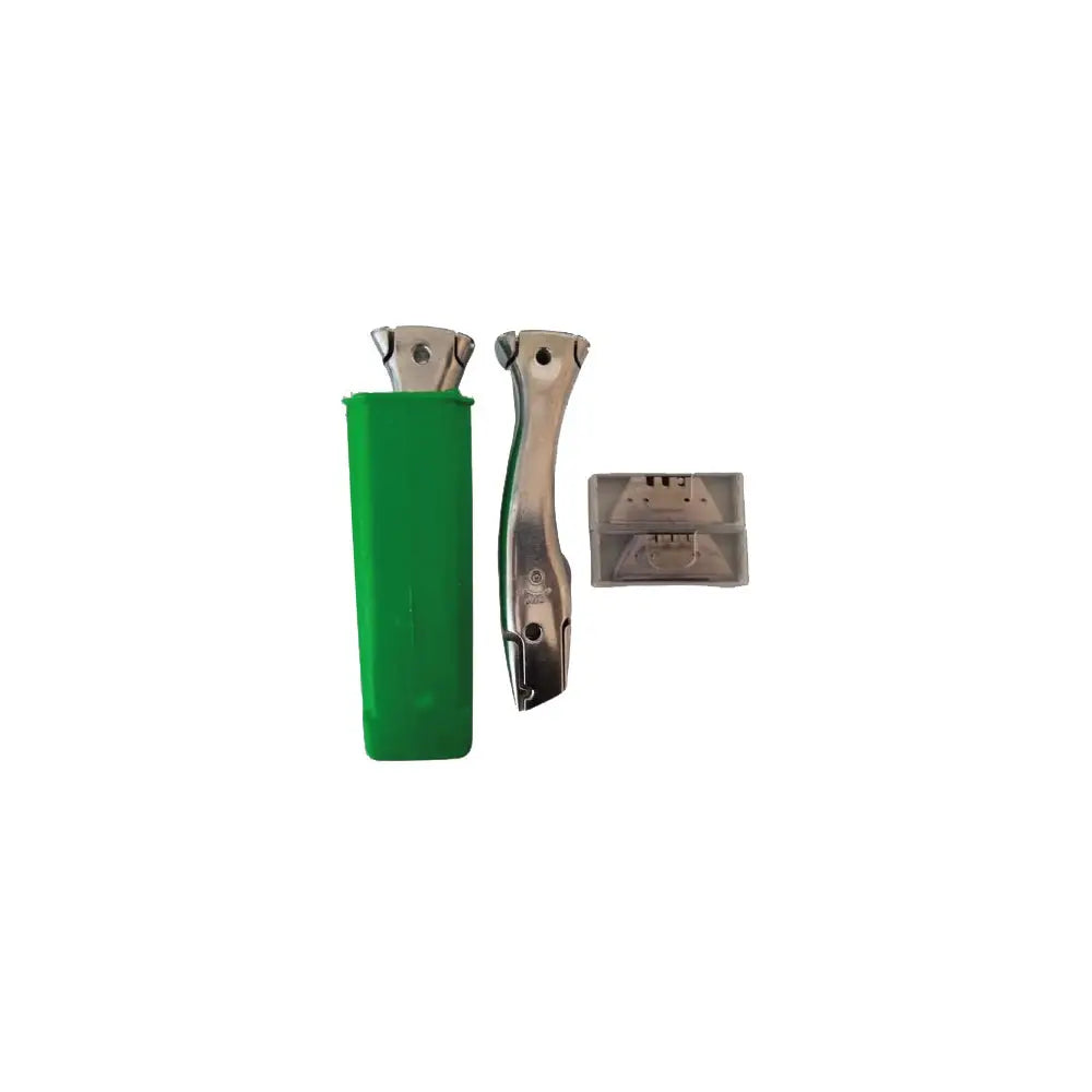 Bladet sitter hela tiden på plats med magnet och går att placera i två lägen. Utrymme för flera extra knivblad finns inuti kniven. Bakdelen på kniven är försedd med gångjärn som håller ihop halvorna och gör bladbyten snabba och enkla. Lätt att rengöra. Levereras i plasthölster med bältesclips att förvara kniven i samt 20 st raka knivblad i plastdispenser man även kan förvara gamla blad i (2 x 10-pack). SB-packad.