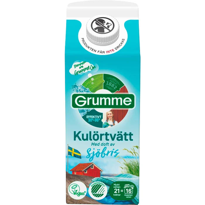 Dermatologiskt testad och skonsam mot både hud och textilier, fungerar Grumme Kulörtvätt Sjöbris även vid låga tvättemperaturer, vilket gör den både skonsam och energisnål. Den fräscha doften ger en långvarig känsla av renhet och fräschör.