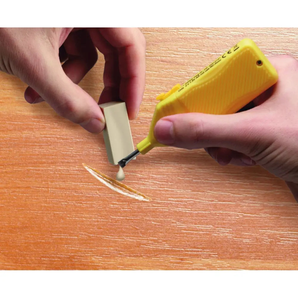 Edding hårdvax lagar effektivt, snyggt och hållbart alla typer av golv i trä, parkett och laminat och andra utsatta ytor som bord och diskar. Klarar upp till 10 mm djupa märken. Genom att du först smälter vaxet med smältverktyget (art.nr 691837) kan du blanda olika färger och få till den nyans eller ådring som golvet har. Lagningen blir snygg, hård och bestånde. Varje förpackning innehåller tre stavar med måtten 4 cm x 1,6 cm i tre olika nyanser. SB-pack.