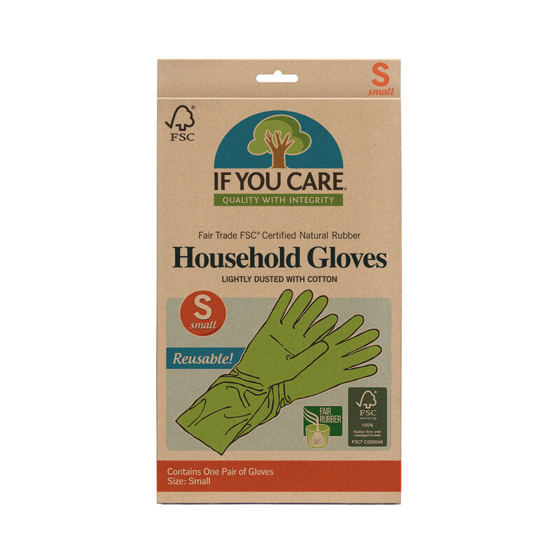 If You Care Diskhandskar är tillverkade av FSC-certifierat naturgummi och är helt komposterbara. De innehåller inga blekmedel eller skadliga kemikalier, vilket gör dem till ett skonsamt och hållbart val för diskning, rengöring och trädgårdsarbete. Handskarna är fodrade med 100% naturlig bomull från förnybara källor, vilket ger både komfort och skydd.