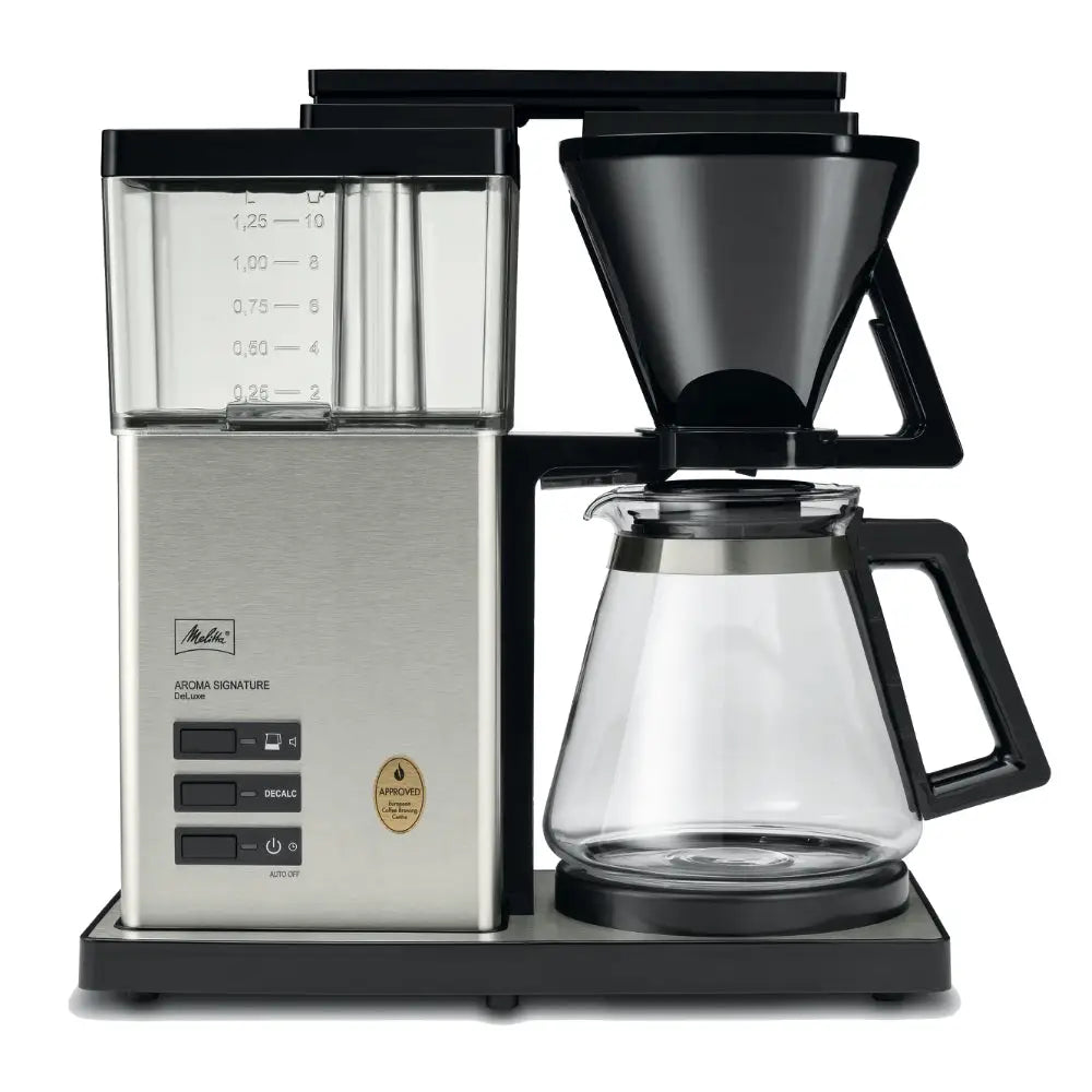 Njut av ett perfekt bryggkaffe med AromaSignature DeLuxe från Melitta. Bästa teknik för optimal bryggtemperatur och bryggtid. Kaffebryggaren är godkänd av ECBC, tillverkad av högklassigt material och är enkel att använda.