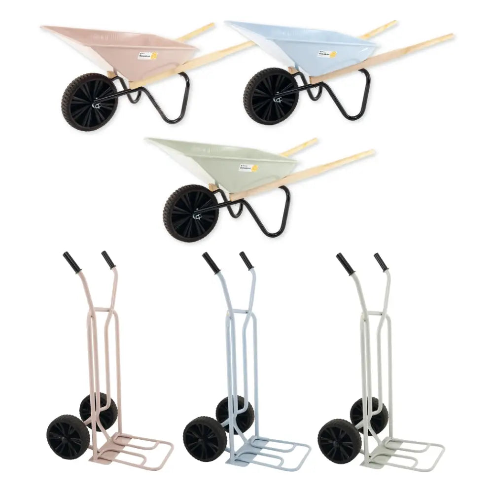 Paket med Hörbys skottkärra 90 PFG och magasinkärra L3 PFG i Natures Collection fina färger humleblomster, blåblinka och daggkåpa.