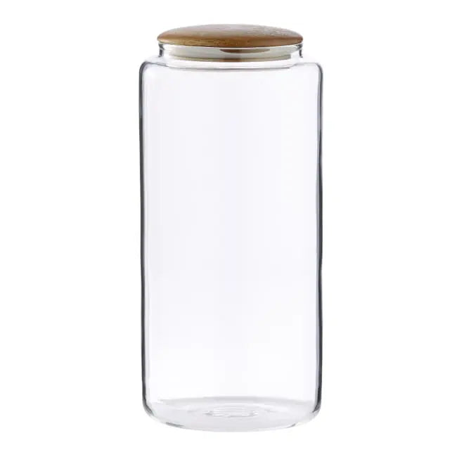 Stilren glasburk med lock i akaciaträ – perfekt för trendig förvaring