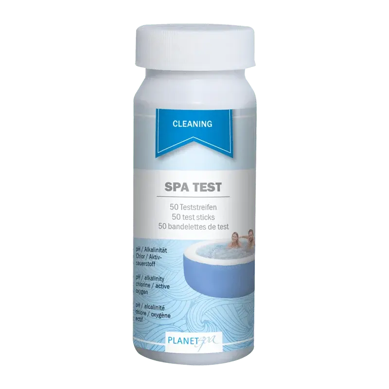 Teststickor för snabb och enkel mätning av pH-värde, klorhalt och aktivt syre i spabad.