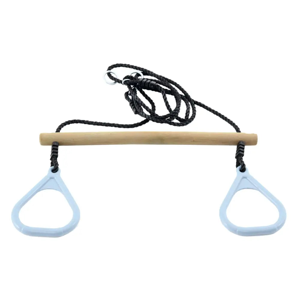 Trätrapets med plastringar för spralliga barn! Häng upp den i din gunga eller i trädgården.