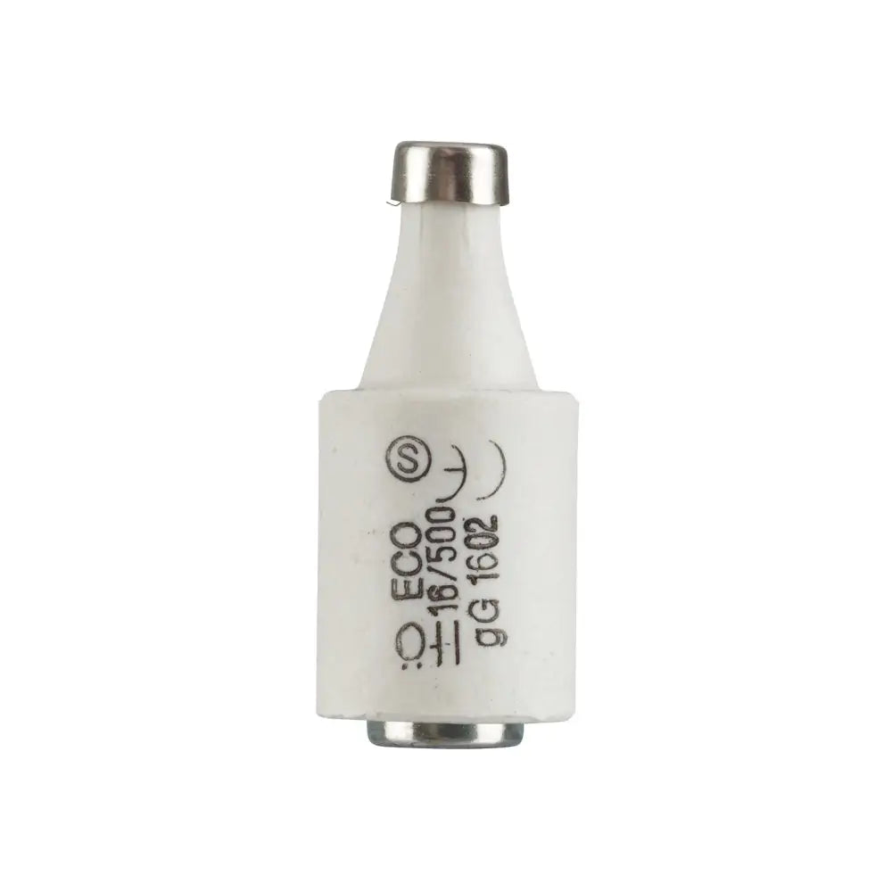 D-säkring Eco gG DII 6A 500V. Miljövänlig D-säkring för ledningsskydd fri från bly och kadmium. Uppfyller IEC 60269, hög brytförmåga, utmärkt selektivitet samt en optimerad smältkarakteristik. Porslinshöljet ger hög termisk chockbeständighet och optimal värmeledningsförmåga. Kontakterna är av koppar eller kopparlegering som ger hög ledningsförmåga och lågt kontaktmotstånd. Kontakterna är förnicklade eller försilvrade för bästa kontakt och lågt övergångsmotstånd. Låg effektförbrukning, vilket innebär låg temperatur på säkringen och kringliggande utrustning samt minskar risken för oxidation. Låg effektförbrukning innebär dessutom lång livslängd, vid märkström är den åldersbeständig. Låg energiförbrukning ger också lägre driftkostnader och minskad förlustenergi i nätet. Levereras i 5-pack.