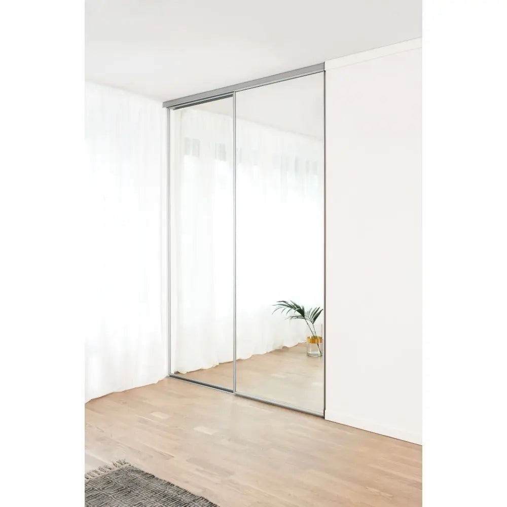 Skjutdörr Original i standardstorlek, 623x2350 mm med ram i silver och spegelfyllning, Komplettera med en andra dörr samt Skenset 1240 mm, för en lösning som matchar Starter kit 2 sektioner klädförvaring.