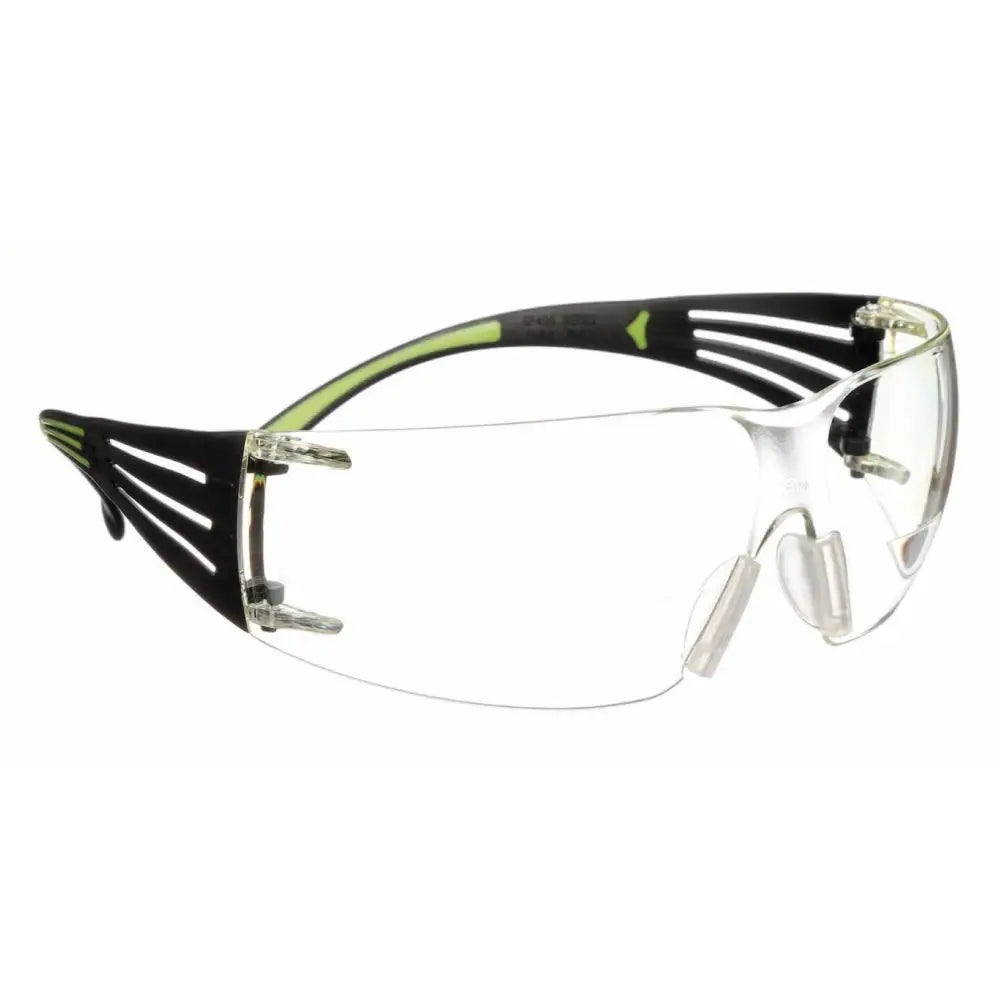 3M Securefit 400 Reader är skyddsglasögon med förstoringsglas i nedre delen av linsen. Reader finns i tre versioner lässkyddsglasögon: +1.5, +2.0 och +2.5. De platta och flexibla skalmarna gör att dessa skyddsglasögon passar extra bra att använda tillsammans med hörselkåpor, då inläckage av buller minimeras. Skalmarna bygger på 3M Pressure Diffusion Temple Technology vilket gör att skalmarna anpassar sig efter olika individers huvudform och därmed sitter som de ska och skyddar ögonen i alla lägen. Mjuk, justerbar näsbrygga gör att glasögonen kan anpassas efter individen för bästa möjliga passform. Uppfyller kraven i EN 166.