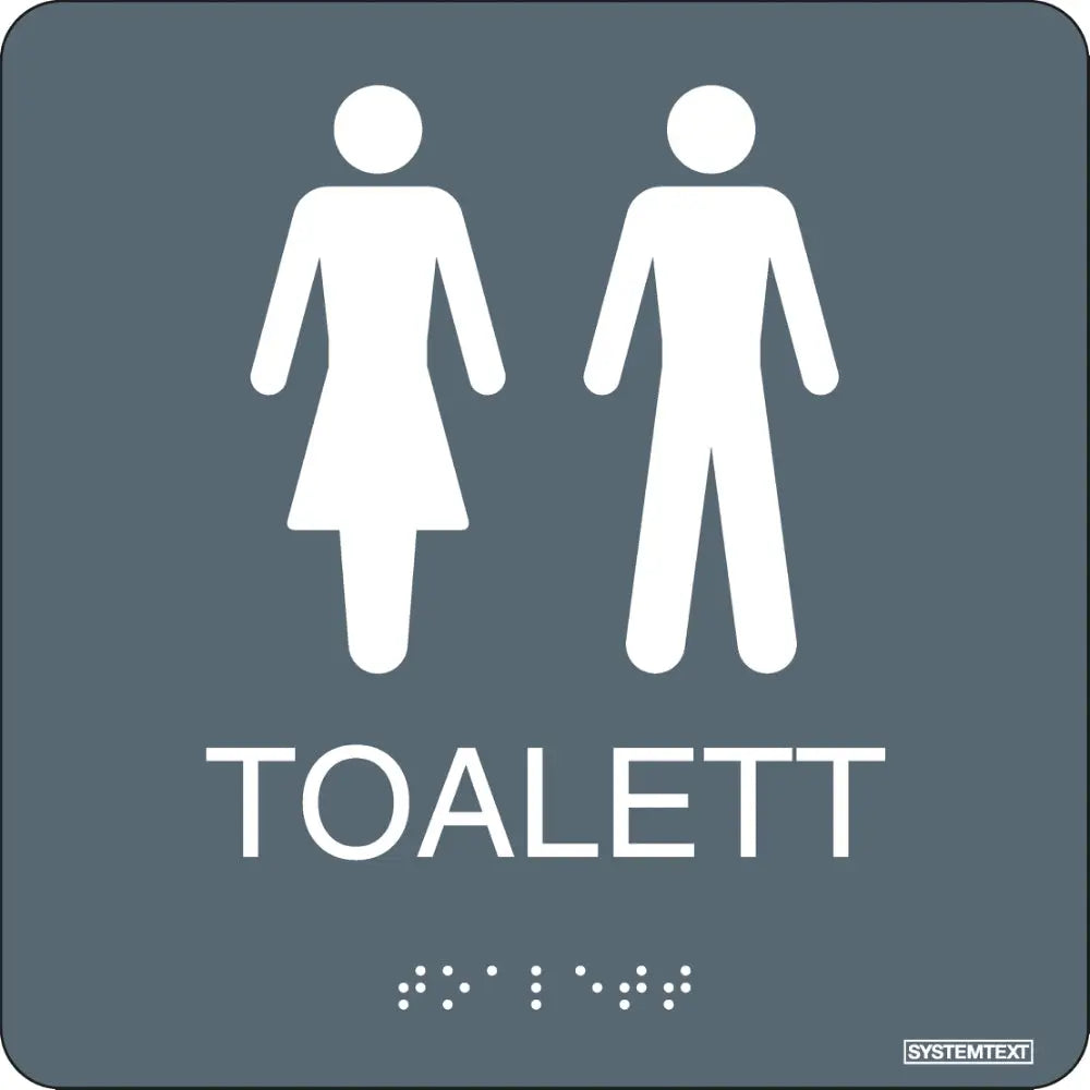 Skylt Toalett dam/herr Grå. Tillämpning: Vägg. Material: Plast. Yta: Taktil.