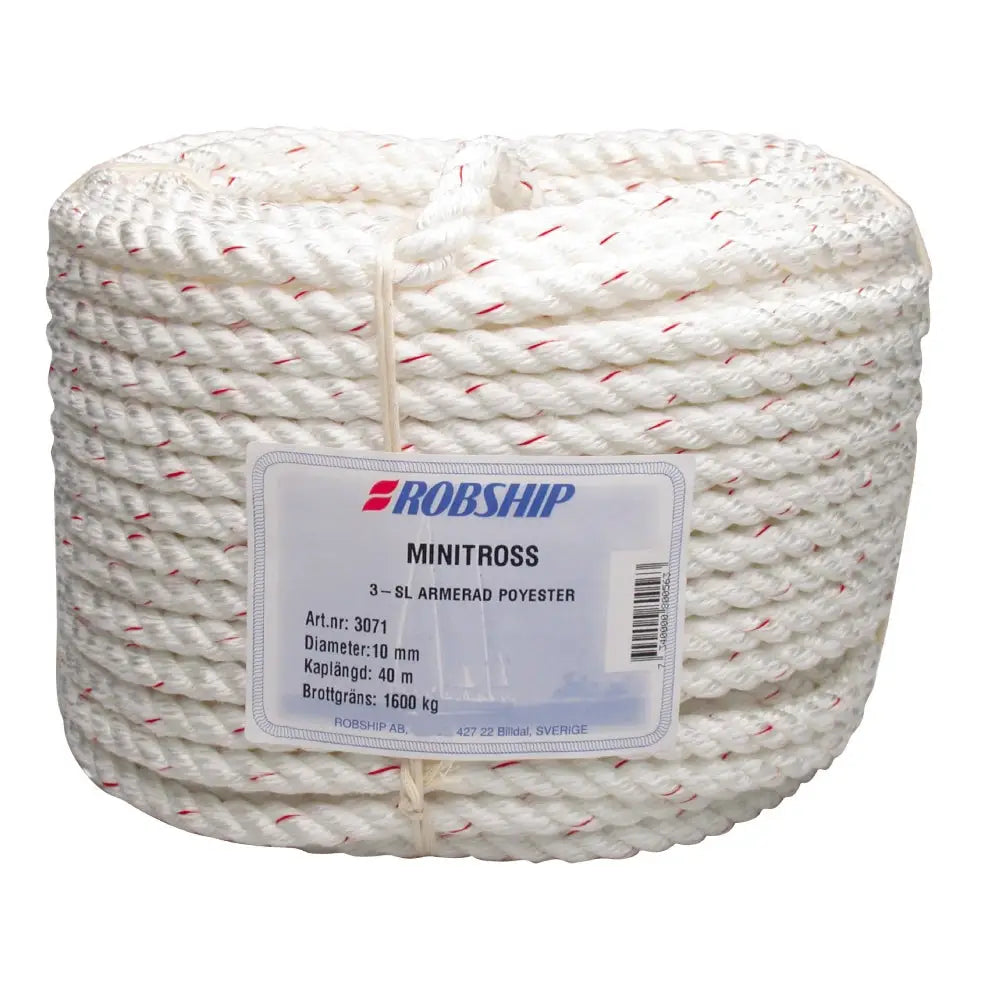 - Beskrivning: TÅGVIRKE 10MM 40M ARM VIT POLYESTER
