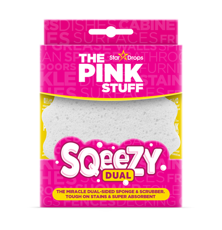 The Pink Stuff Sqeezy Dual Scrub/Sponge gör rengöring av olika ytor i hemmet snabb, enkel och effektiv. Med två funktionella sidor är den det perfekta verktyget för både skrubbning och vätskeupptagning.