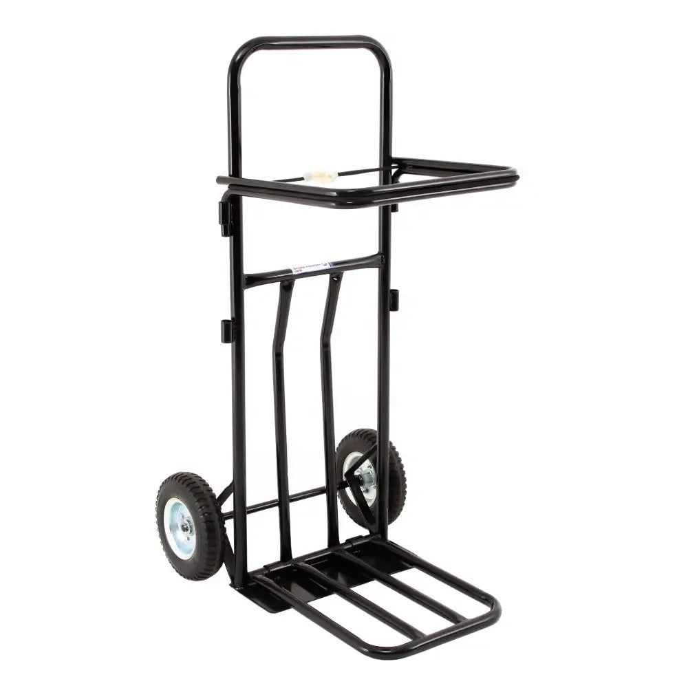 Tre kärror i en. Med enkelt handgrepp förändras kärrans funktion efter behov. Hopfälld fungerar den till frysskåp, spisar m.m. där det är svårt att komma in med en lastplattform. Med lastplattformen utfälld fungerar den som en traditionell magasinkärra, där man kan lasta det mesta. Med ett enkelt handgrepp monteras sopsäcksringen framtill och det blir en hållare för sopsäckar. Spännband för sopsäcken medföljer. När sopsäcksringen inte används sitter den väl förankrad i hållarna baktill på kärran.