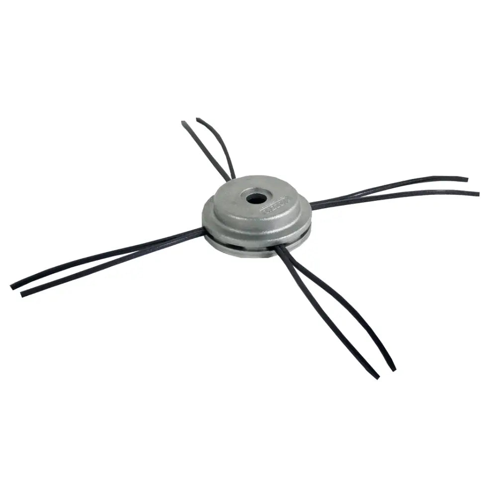Kraftigt trimmerhuvud av aluminium. Laddas med dubbelvikt 42cm Nylium Square, 2,55mm alternativt 3,75mm i diameter. Trimmerhuvudet monteras med röjarens klingmutter. Bricksats medföljer.